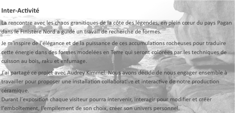 Pour démarrer cette orientation je passe deux années dans l’atelier céramique des Beaux Arts de Bourges où je rencontre Jacqueline LERAT. Je connaissais son univers qui représente une forme d’aboutissement dans le travail de la Terre.