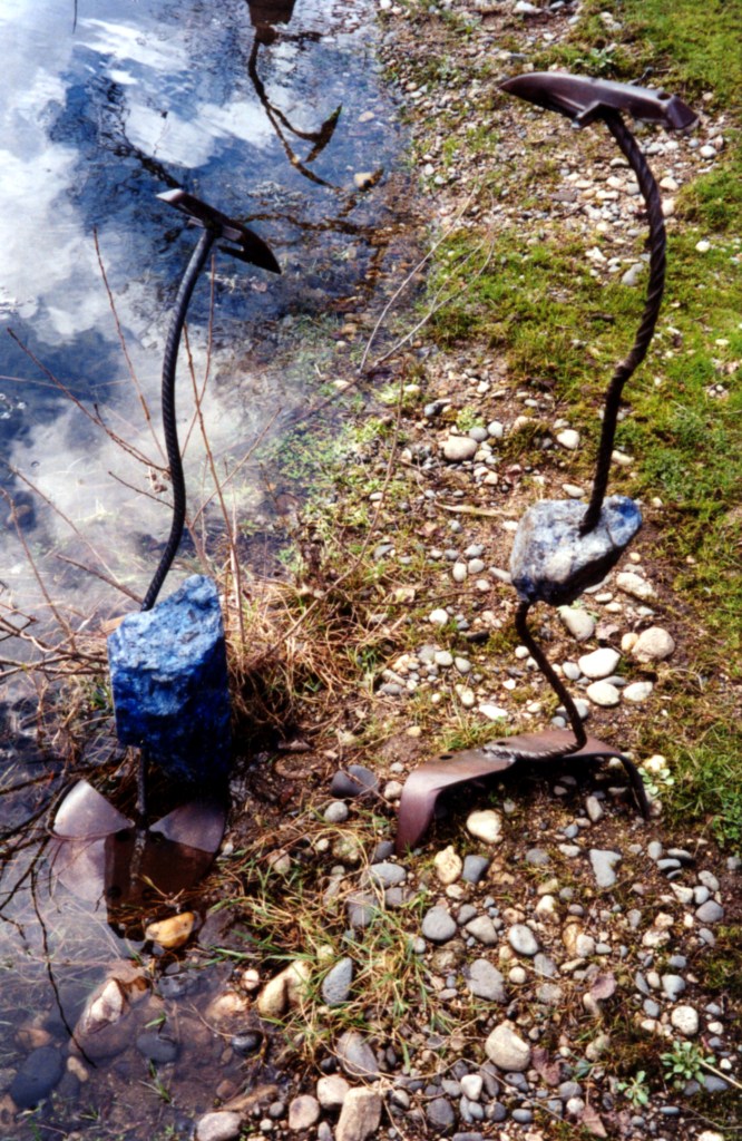 J’en charge le coffre de ma voiture et poursuis mon trajet avec l’un d’eux posé à mes côtés, à la place du passager. Je l’observe et l’idée jaillit comme une évidence, c’est en soudant des outils de rebus à ces formes de béton que vont naître les Hérons.