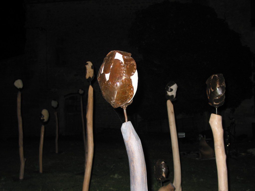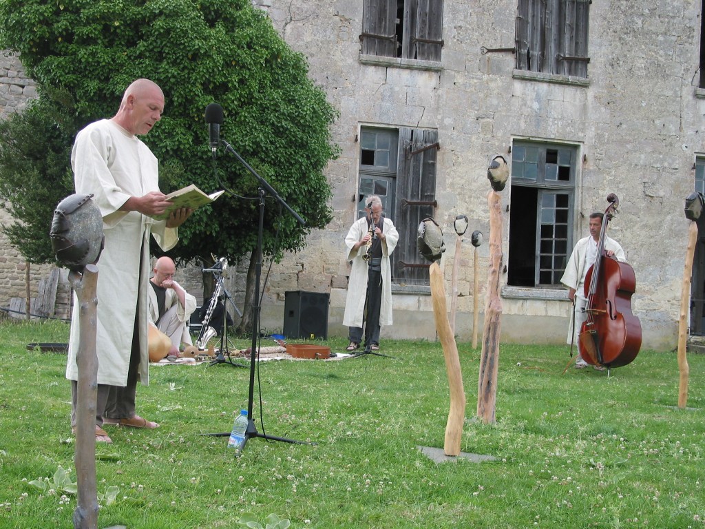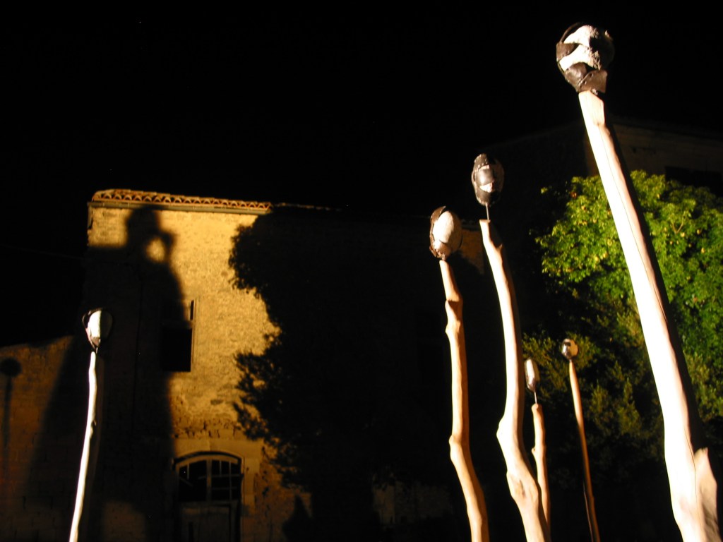 Une rencontre entre ces sculptures et un auteur illustrateur (Éphémère) donnera naissance au « cheminement des Pèlerins », texte qui accompagnera la performance tout au long de son pèlerinage.