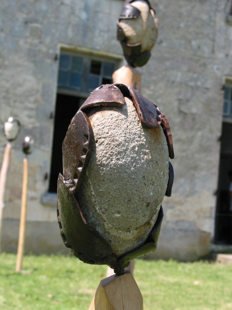 Avec les galets de l’Océan, avec les fers de vaches, avec des branches de toutes essences, je retrouve l’héritage de mon grand-père dans le travail du fer et du bois pour faire naître le peuple des Pèlerins.